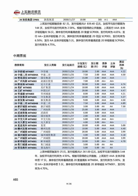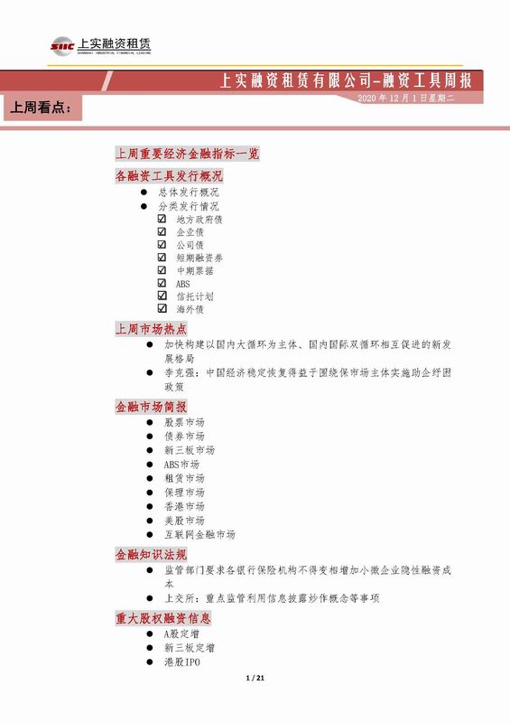 | 當(dāng)前位置:新聞中心 > 上實(shí)-融資工具周報(bào)2020.11.23-2020.11.27 | |||||