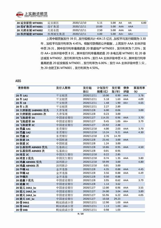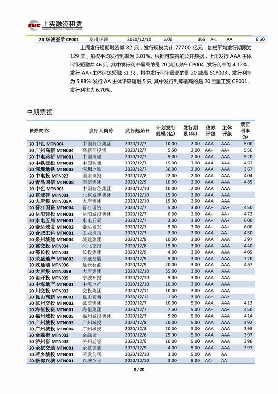 | 當(dāng)前位置:新聞中心 > 上實(shí)-融資工具周報2020.12.7-2020.12.11 | |||||