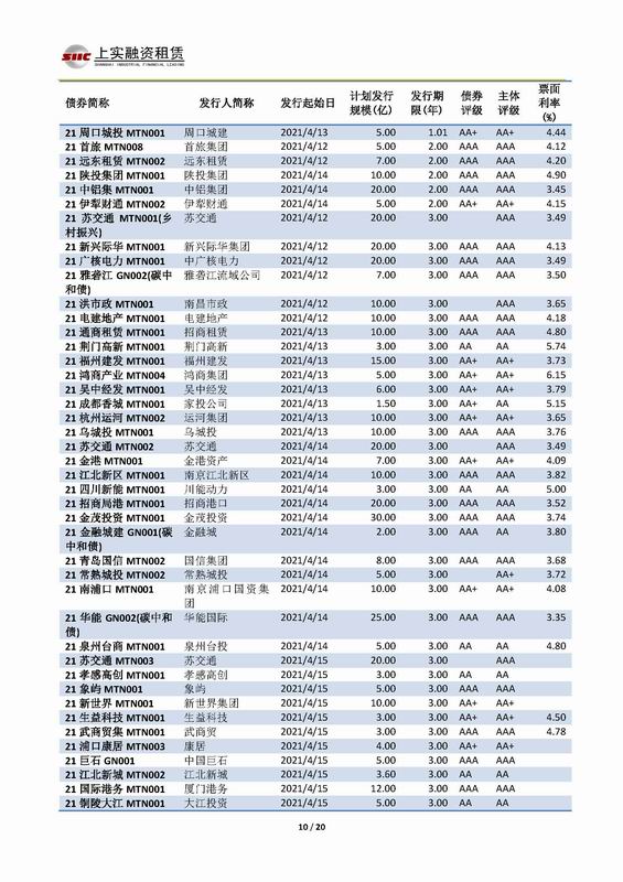 | 當(dāng)前位置:新聞中心 > 上實-融資工具周報2021.4.12-2021.4.16 | |||||