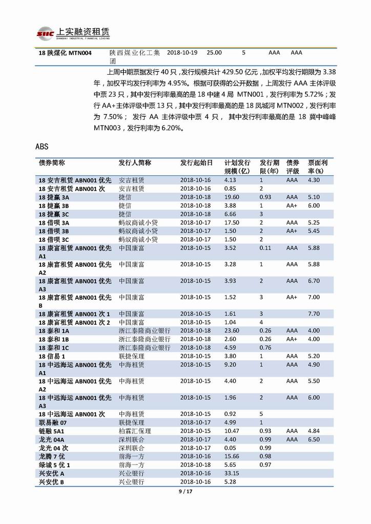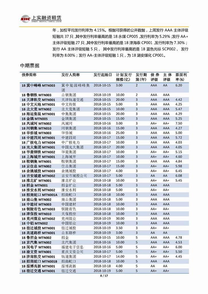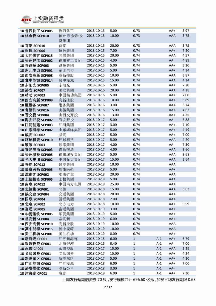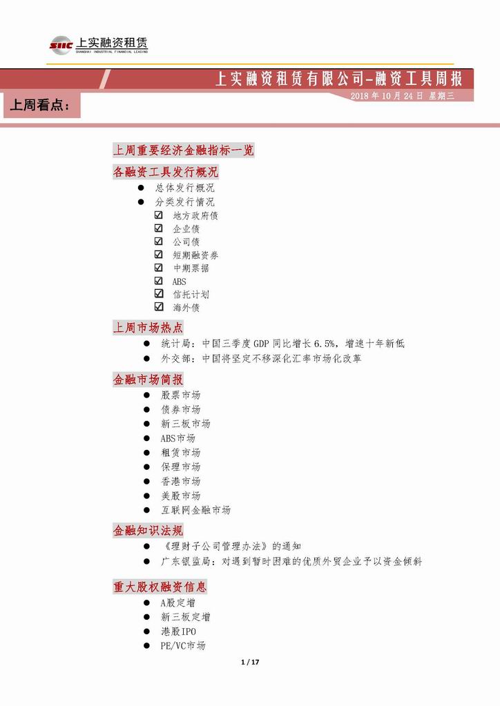| 當(dāng)前位置:新聞中心 > 上實-融資工具周報20181012-20181019 | |||||