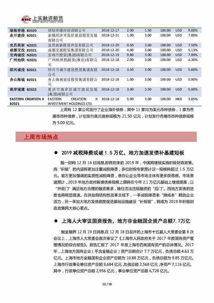 | 當(dāng)前位置:新聞中心 > 上實(shí)-融資工具周報(bào)20181214-20181221 | |||||