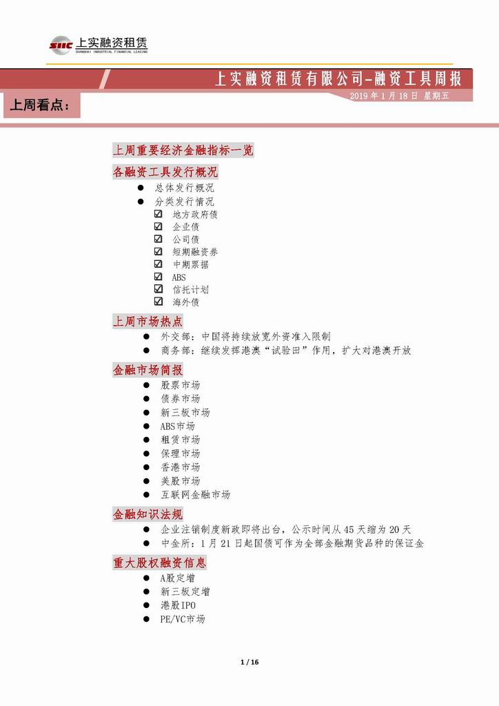 | 當(dāng)前位置:新聞中心 > 上實(shí)-融資工具周報(bào)20190104-20190111 | |||||